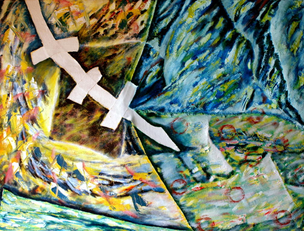 This one from 1995. Seems like I was quite productive that year. The colors were working good here and almost suggesting a three dimensional shape