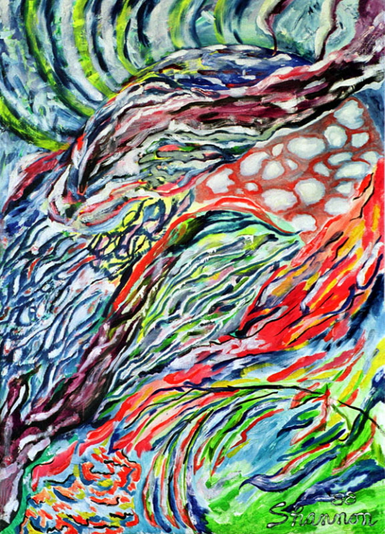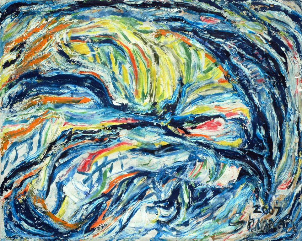 This oil painting was from 2007. It was at 5 by 5 foot. I still feel movement from the colors and the interaction between the palate knife and oils. The life in this painting can now only be seen digitally. At least this painting didn’t have the cold death of being hung on a museum wall or existing in a damp dark corner of some basement. This painting died in the heat of battle by the hands of its creator – the only honorable death any painting can forgo. It fought like a true warrior with a fierce bravery as the wood stretcher slowly splintered in defiance.  Its experience is still present as the pain from destruction was an important part of our dance as was the creation.