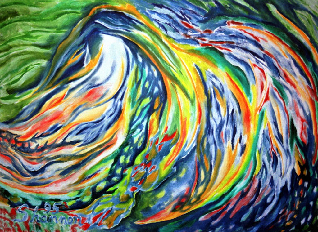 Here’s another painting I did in Florida in 1995. It’s about 3 foot square. Another palate knife painting and something very quiet in its movements. But most important to me – probably because of the balance and distribution of color – is a sense of honesty I feel as the tumblers of light sensors in my eyes communicate its form and rebuild the memories of its coming. This painting reminds me of who I am every morning and every evening as I go to bed as it looks down at me from my bedroom wall.