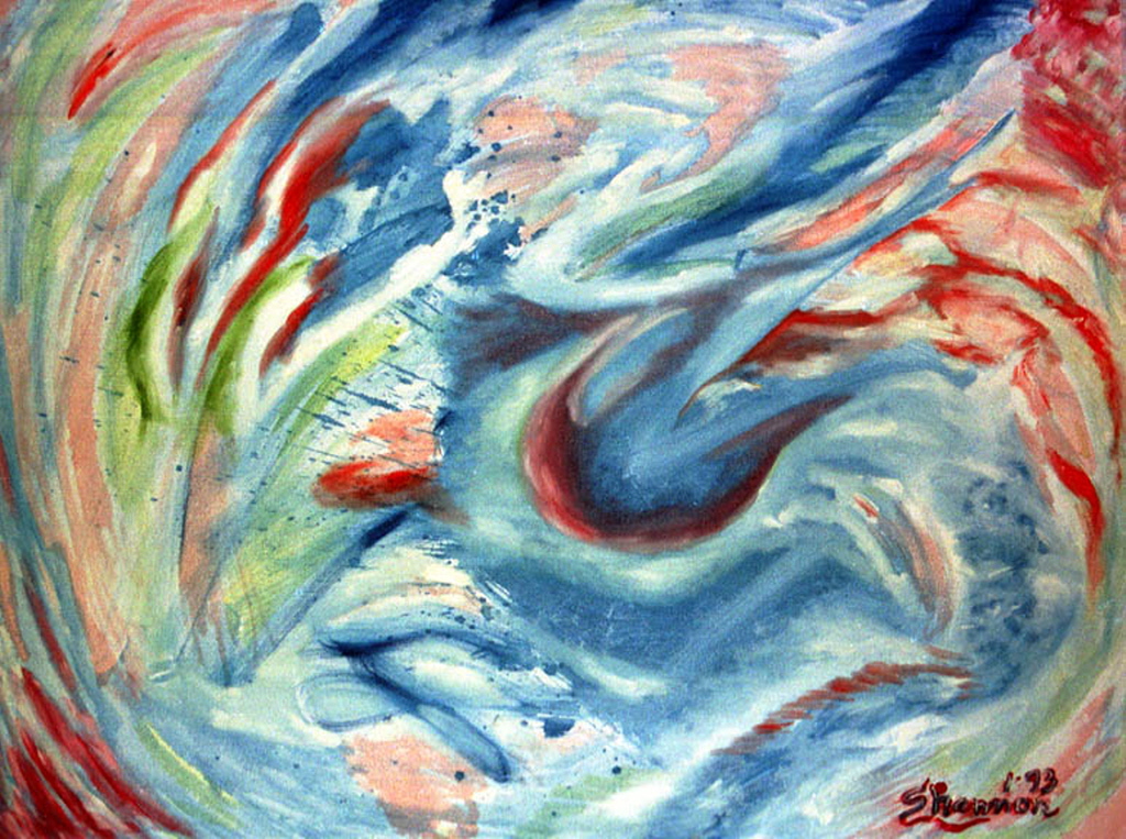 This one goes back to 1988 when I lived in Delaware. People sometimes ask me about the abstractions and what they are or symbolize. Any answer I might offer on this carries little if any weight. At times I am much more impressed with any references of abstractions of others than what my initial reactions to them were. If they offer multiple interpretations I find that exciting then I will accept their gift. The multiple symbolism this one has offered does suggest the promise of many gifts.